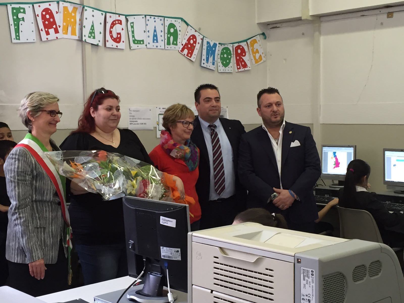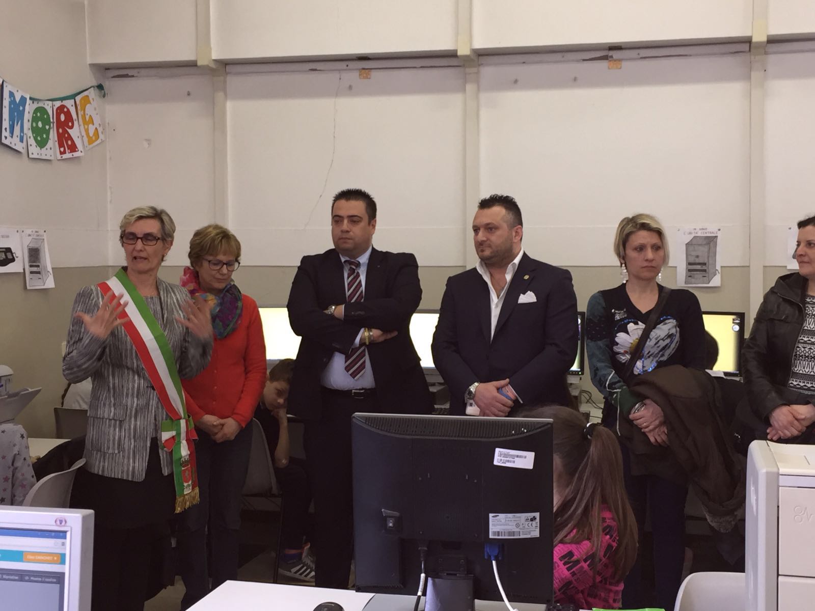 Ieri mattina, nella scuola elementare Fasola Quarello di Via Mazzini a Nova Milanese, il presidente Pasquale Amore, la mamma di Arianna Daniela Mazza sono stati invitati per un ringraziamento davvero speciale. Insieme a loro è stato invitato anche il dott. Camillo Antonio Papasodaro, dirigente di Unicredit Spa. La scuola, diretta dalla d.ssa Zorzetto, ha voluto ringraziare Unicredit per aver donato alla scuola ed in particolare all’aula di informatica, 20 computer e 10 stampanti. Finalmente la scuola ha un’aula dedicata anche all’utilizzo di questi strumenti tecnologici che rappresentano sempre più che mai il futuro anche nell’attività di studio degli scolari. L’Associazione SKO ci teneva particolarmente a questo dono poichè la scuola elementare è quella che Arianna ha frequentato e a cui è titolata la biblioteca dove il nostro angelo passava piacevolmente ore a studiare e a divertirsi con i suoi compagni.
