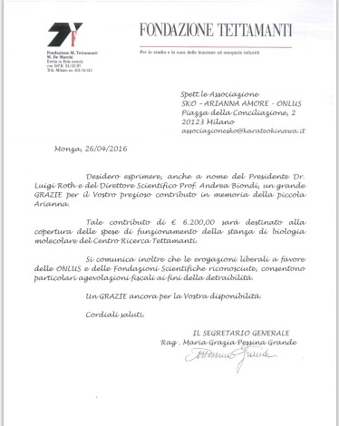 L’importo donato è stato di 6.200 Euro e corrisponde ai proventi della vendita delle Colombe della Speranza e i fondi raccolti durante la serata di Nancy Coppola.