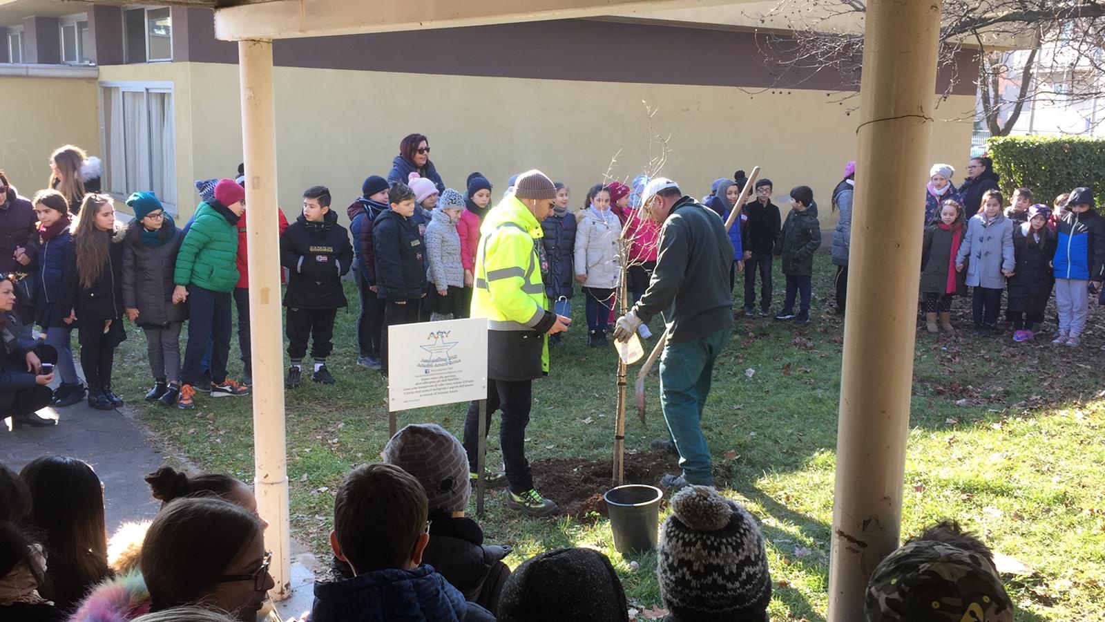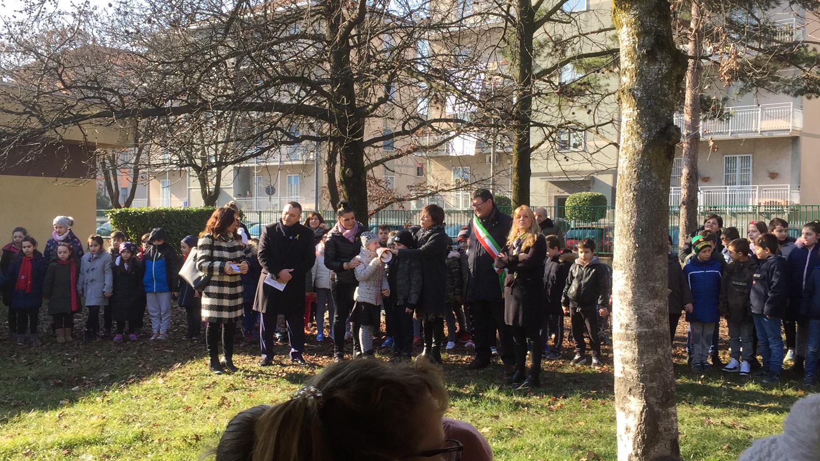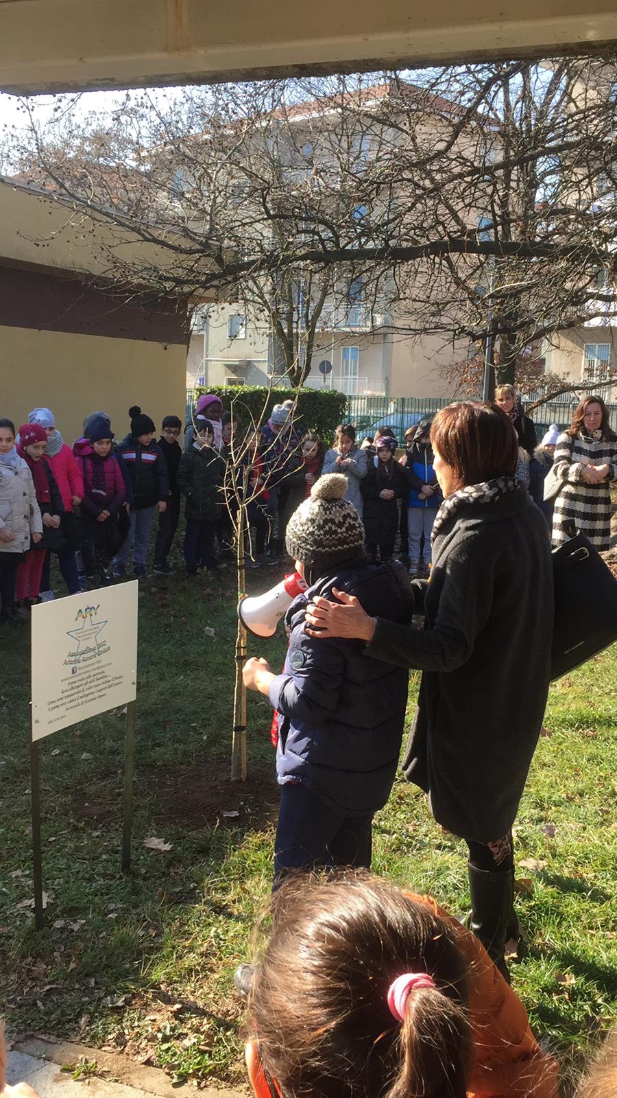 La nostra socia sostenitrice, Maria Pampalone, Daniela Mazza, mamma e vicepresidente della nostra associazione e Pasquale Amore, Presidente e papà di Arianna hanno illustrato l’evento insieme a Fabrizio Pagani, nuovo Sindaco di Nova Milanese e alla d.ssa Ruscelli, vice vicario della Scuola Secondaria Inferiore SEGANTINI dello stesso comune. Entrambi, entusiasti di tale iniziativa, hanno dato il proprio benestare affinché il tutto potesse svolgersi sia nel giardino della Scuola Primaria Fasola Quarello e nel giardino vicino la sede Avis (nella piazza conosciuta come “Piazza Mercato”). Sono state apposte due targhe titolate alla nostra piccola grande guerriera Arianna per onorare il suo ricordo affinché la sua battaglia e quella di tanti bambini non passi inosservata. Anche la d.ssa Giovanna D’Amico, rappresentando la Fondazione Tettamanti di Monza, è intervenuta e ha spiegato con parole molto semplici a tutti i bambini, il lavoro quotidiano dei ricercatori per scoprire la cura dei tumori infantili.