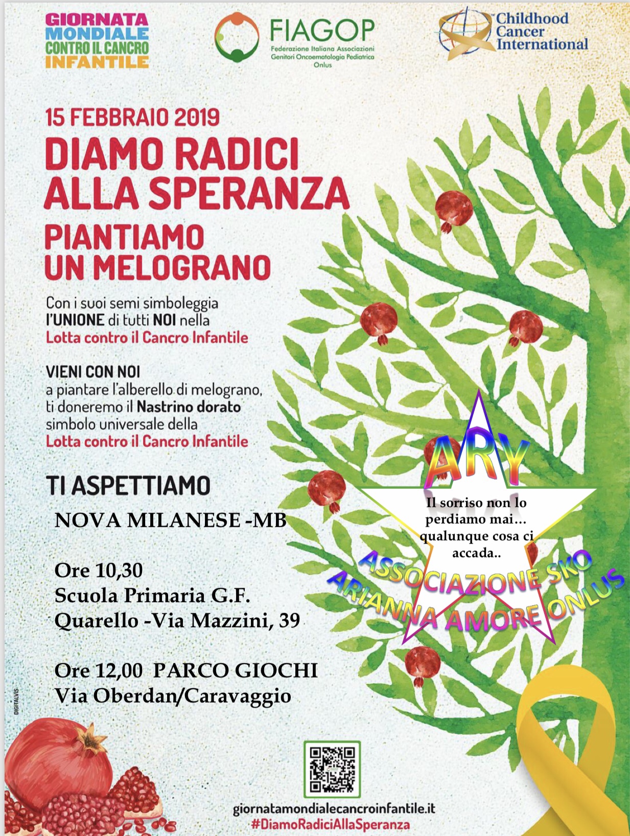 Quest’anno, tantissime associazioni aderenti di tutta Italia, hanno piantato degli alberi di melograno per “dare radici alla speranza” e hanno tatuato sulla pelle il simbolo del nastrino dorato della ricerca contro il cancro. Un’iniziativa davvero importante e attenta a delle tematiche di forte impatto: il cancro infantile e l’impatto ambientale. Quest’ultimo è il motivo per il quale la FIAGOP ha scelto di non lanciare i palloncini in cielo (seppur siano stati p sempre usati palloncini in lattine biodegradabile) sostituendoli con dei meravigliosi alberi di melograno da piantare nel terreno. Perché proprio il melograno? Perché questo albero è resistente, simbolo di energia vitale, così come il frutto composto da tanti piccoli chicchi rosso scarlatto e lucenti. Ogni chicco è parte fondante del frutto stesso, come avviene nella fondamentale alleanza terapeutica che unisce medici, pazienti e famiglie.